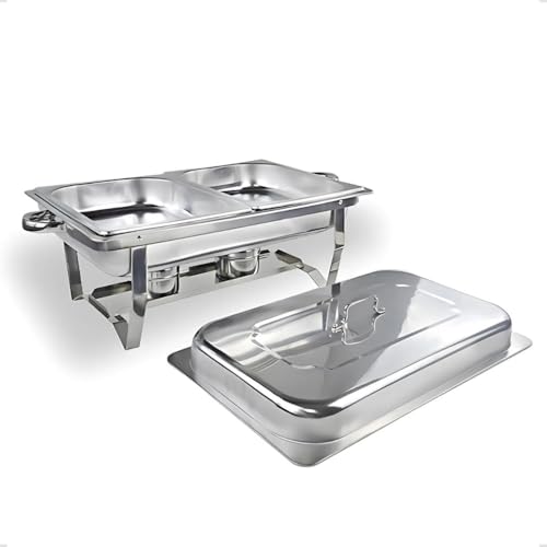 Material de alta qualidade: fabricado em aço inoxidável, fácil de limpar e garante um visual elegante em qualquer ambiente. sistema banho-maria: perfeito para manter os alimentos na temperatura ideal, sem o risco de queimá-los, preservando a qualidade dos pratos por mais tempo. design prático e seguro: equipado com suporte estável e uma tampa ajustada, o rechaud oferece segurança durante o uso e facilita o acesso aos alimentos. capacidade generosa: ideal para servir porções de tamanhos variados, sendo perfeito para pratos quentes como sopas, molhos, arroz, carnes e mais. versatilidade de uso: perfeito para eventos como casamentos, aniversários, reuniões corporativas e refeições em família. cuba dupla: possui segunda cuba para retirada e troca dos alimentos