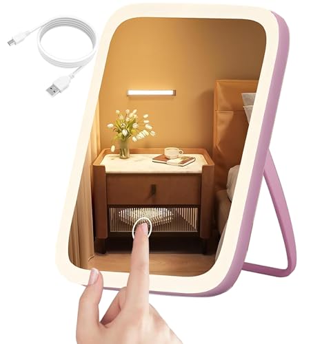 DimensÕes: espelho de maquiagem com tamanho ideal de 22x16cm, perfeito para uso diário em sua mesa ou bancada. iluminaÇÃo led: si.stema de iluminação led integrado com controle touch para ajuste de intensidade, alimentado via usb rotaÇÃo versÁtil: base giratória com rotação de 360 graus permite ajuste do ângulo de visualização conforme necessário. controle touch: interface sensível ao toque para controle fácil e intuitivo da iluminação led. design moderno: acabamento elegante e contemporâneo que combina com qualquer decoração, ideal para quarto ou banheiro. usb: pode ser ligado a pilha ou via usb (acompanha cabo).