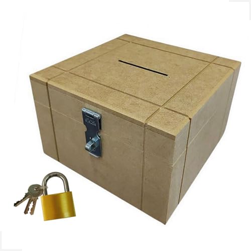 Feito em mdf de alta qualidade: material durável e resistente, garantindo longa vida útil ao produto. design rústico e charmoso: acabamento em madeira crua que oferece um toque vintage e acolhedor ao ambiente. fecho para cadeado: oferece segurança extra para armazenar dinheiro e objetos valiosos de forma sigilosa. abertura para moedas e cédulas: furo superior ideal para inserir moedas e notas com praticidade. compacto e funcional: tamanho perfeito para armazenar pequenas economias ou itens pessoais em qualquer espaço. ideal para aprendizado financeiro: uma ótima opção para ensinar crianças a economizar e organizar suas finanças. perfeito como presente criativo: uma ideia de presente útil e única para qualquer idade.